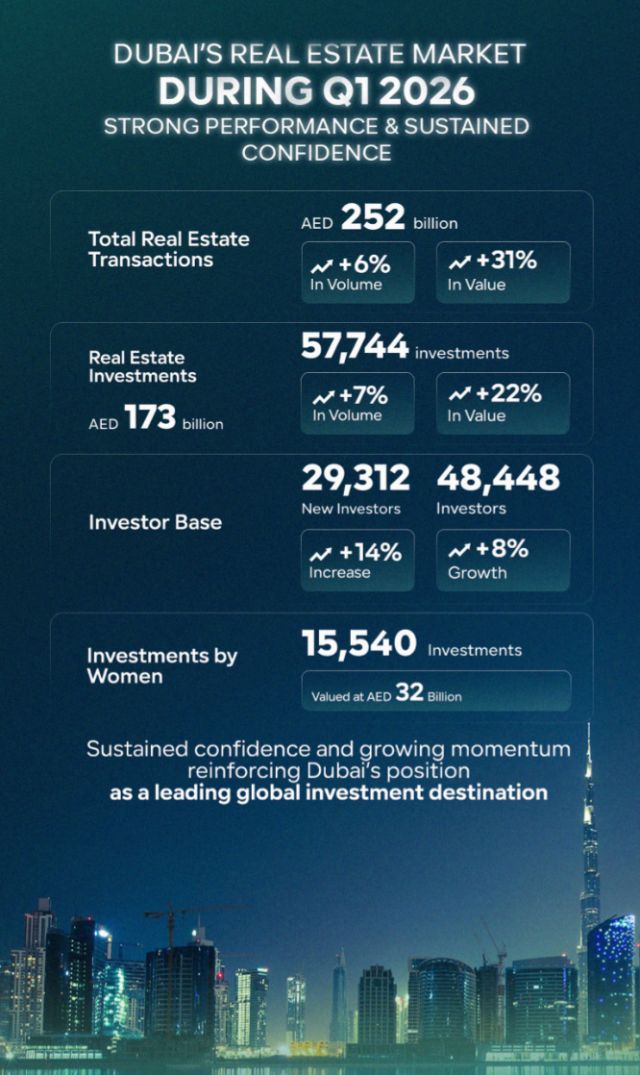 迪拜房地产交易额预计在2026年第一季度增长31%,达到2520亿迪拉姆。